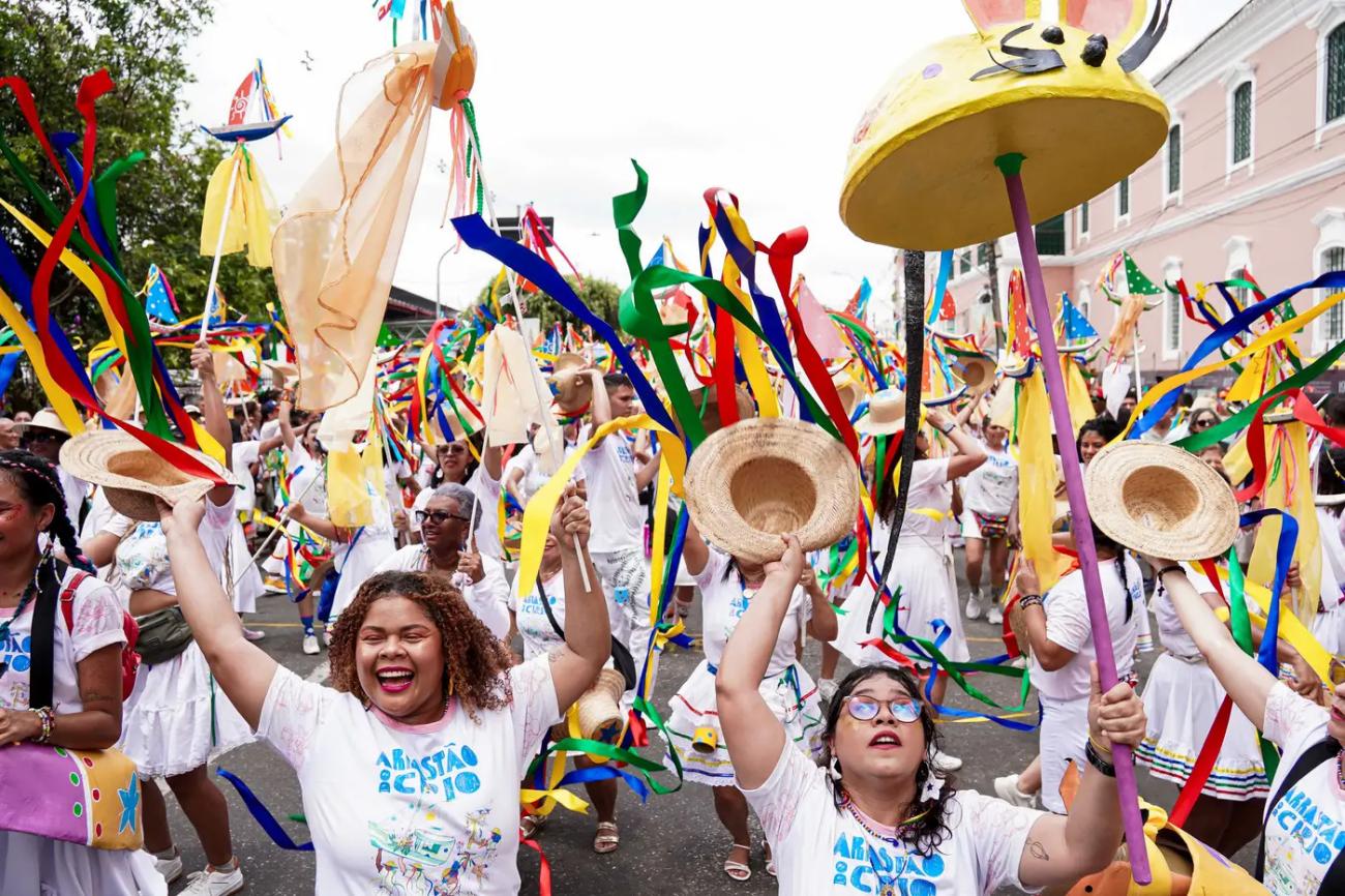 Após acompanhar a saída da Moto Romaria, o cortejo seguiu até a Praça Dom Pedro II, no centro histórico de Belém, onde o Arraial do Pavulagem realizou o tradicional show de encerramento do evento, reunindo centenas de pessoas em uma celebração de fé e cultura popular.