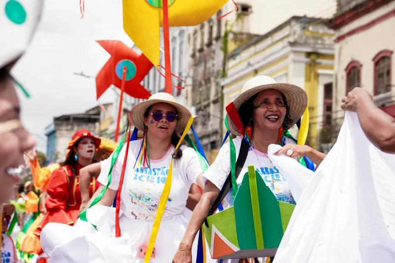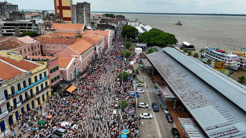 Com uma programação marcada por música, dança e encenações teatrais, o cortejo também trouxe mensagens de preservação da floresta e dos rios da Amazônia, conectando fé e consciência ambiental. “A gente prepara toda uma encenação, ensaia diariamente pra poder fazer essa linda apresentação que vocês estão vendo e quando chega aqui é impossível não se emocionar, ver ela passar, ver a alegria das pessoas”, contou Bianca Lima, colaboradora da equipe de pernaltas.