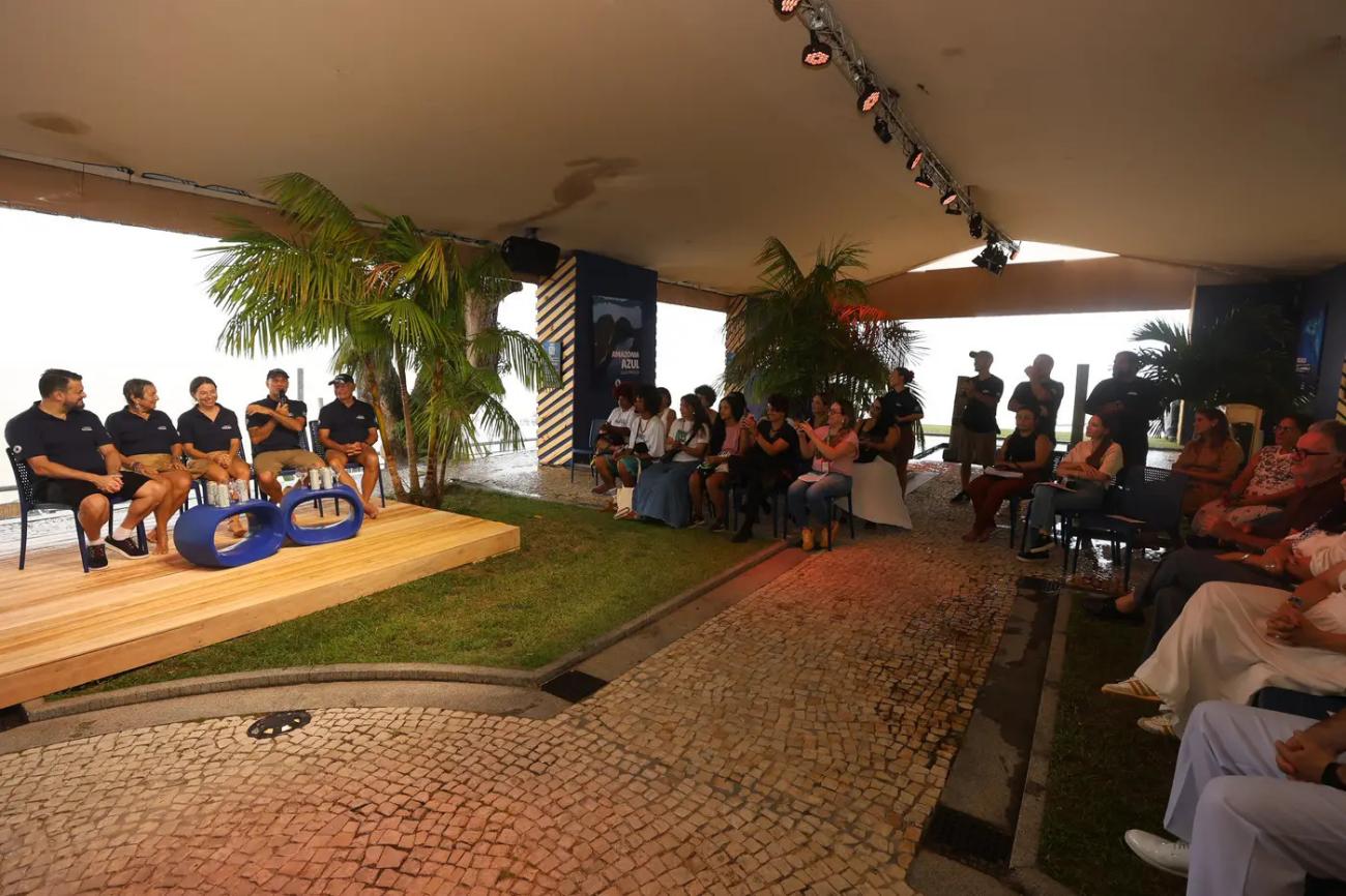 Realização do Instituto Voz dos Oceanos, liderado pela família Schürmann, o espaço propõe reflexões que conectam a Amazônia ao oceano, alertando para a urgência em conter o desequilíbrio climático.